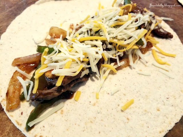 If using the stove top, add 1 T. olive oil to a large cast iron skillet on high heat. Add the steak and cook, stirring constantly, until steak has browned. Remove from skillet to a plate. Add veggies and cook, for 3 - 4 minutes until they begin to soften. Add the steak back to the skillet along with any juices that are in the plate. Season with the fajita seasoning and stir so the steak and vegetables are coated. Stir in water and lower heat to medium and let cook for another minute or so. Remove from heat.